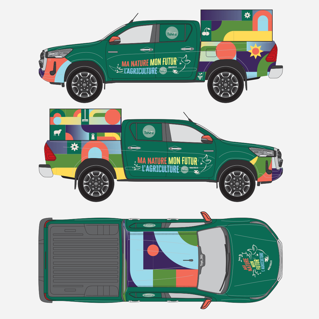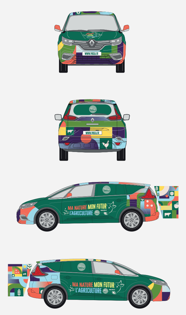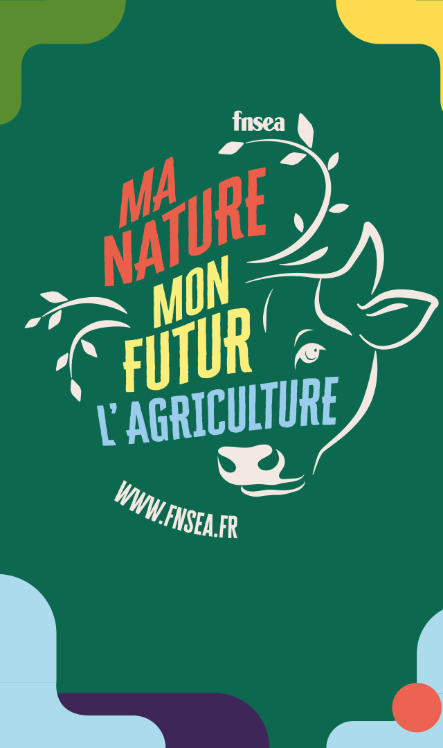 Gagner en notoriété en tant que marque FNSEA qui fait la promotion d’une agriculture stratégique, moderne et innovante et de métiers d’une grande diversité au caractère essentiel. L'utilisation d'un pattern déclinable sur un maximum de supports, représentant les activités de la FNSEA sur un ton coloré et vivant est préconisé par Becom. À cela s'ajoute un bloc marque de la campagne pour une reconnaissance immédiate.